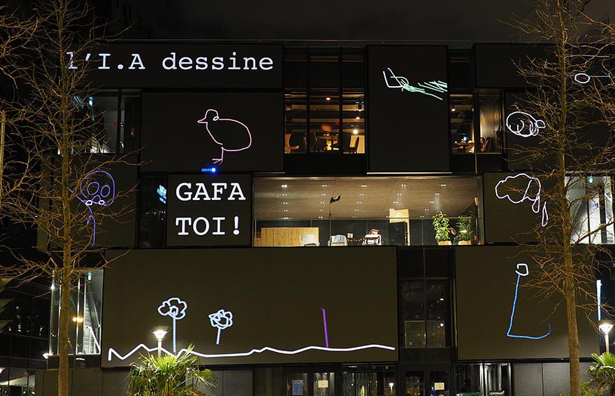 Ces travaux questionnent, autant de manière critique que ludique, les grands acteurs de l’internet tel que Google, Twitter ou Facebook et le nouveau monde qui nous entoure.