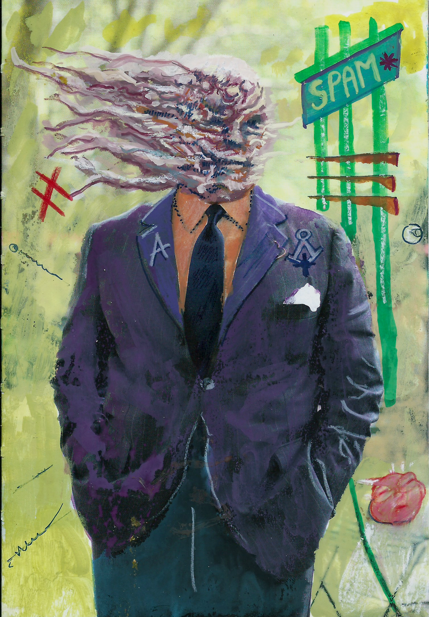 John Hamon, membre ponctuel du mouvement est également présent dans l’exposition avec des oeuvres spécialement créées pour l’occasion. Spammeur des rues, son travail s’inscrit dans cette dynamique par une pratique fondée sur le déploiement massif et non sollicité de son portrait depuis 2001, qui rejoint naturellement l’esprit du SPAM ART. Ayant lui-même proclamé la fin de la période de l’art contemporain, il voit dans ce type de mouvement, qui n’est plus en phase avec les anciens dogmes institutionnels et commerciaux, l’émergence d’une nouvelle ère de l’histoire de l’art.Ce cycle a vocation à être décentralisé, affranchi des filières classiques et porté par de nouvelles stratégies esthétiques, économiques et de visibilité.