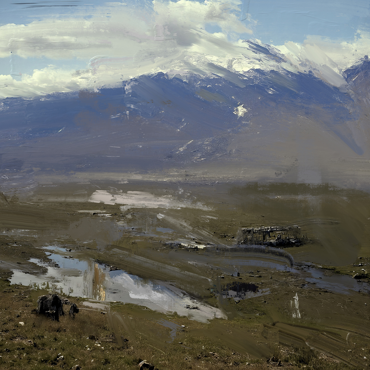 La pratique de Norman Harman se situe à l'aube d'une nouvelle ère picturale, qu'il définit comme la post-peinture. Dans ce domaine élargi de la création d'images, la toile n'est plus un lieu d'origine pure, mais une zone de négociation entre le toucher analogique et la vision algorithmique. La photographie, les modèles d'IA entraînés et la composition numérique ne remplacent pas la peinture, mais la provoquent, générant des fragments de possibilités qui sont ramenés dans le monde matériel par le coup de pinceau.