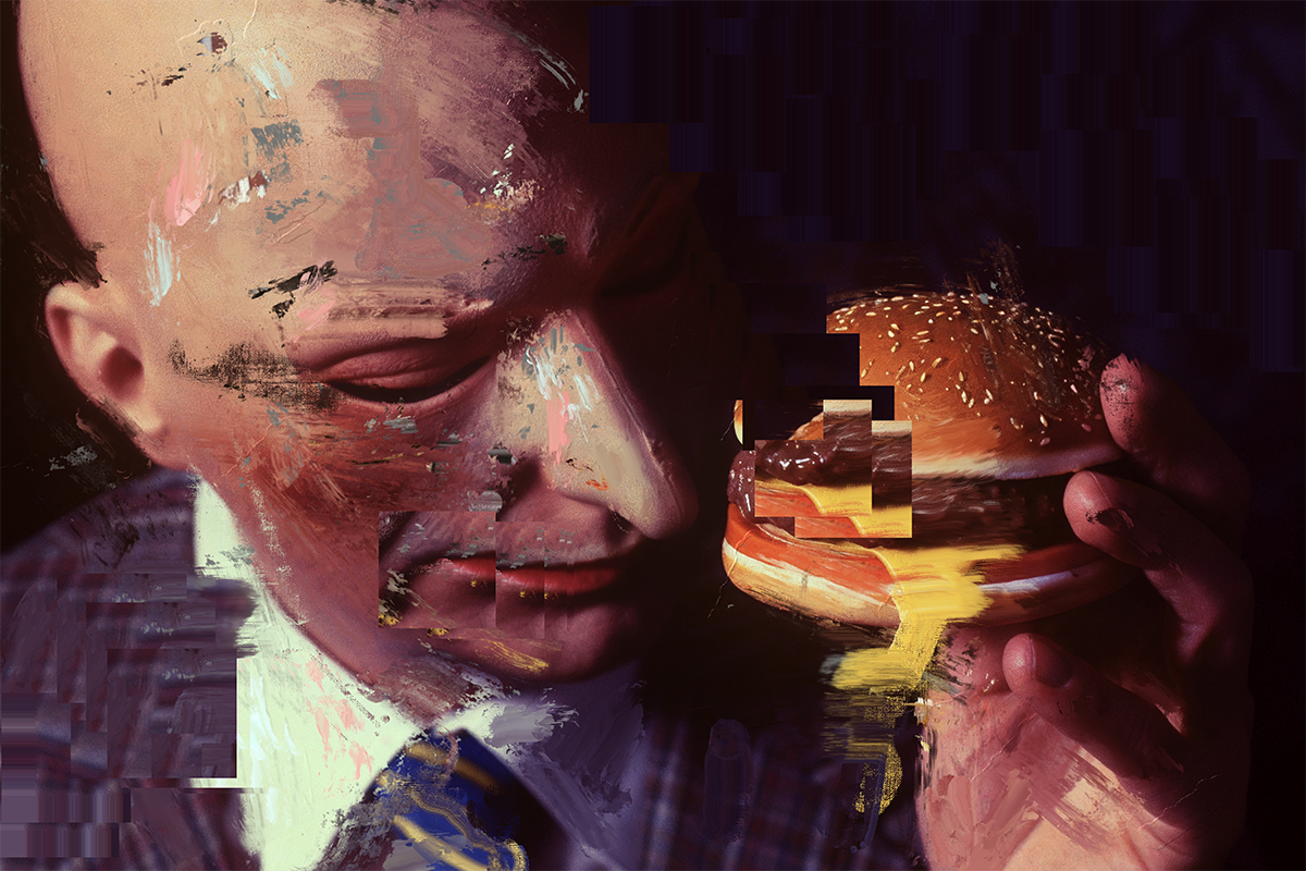 Chaque image commence avec la machine : des ensembles de données tirés de rencontres vécues, d'archives photographiques et de systèmes d'IA spécialement entrainés évoquent des apparitions spectrales qui scintillent à la fois de souvenirs et d'erreurs. Pourtant, ces ébauches algorithmiques ne sont pas des points finaux ; ce sont des provocations qui exigent une traduction. Harman réaffirme le corps dans ce processus à travers des surfaces peintes à la main, en utilisant des pinceaux numériques personnalisés conçus pour faire écho aux particularités de sa pratique analogique. Le résultat n'est ni une peinture numérique, ni une peinture traditionnelle, mais une forme hybride dans laquelle le travail du peintre confronte et rachète les hallucinations de la machine.